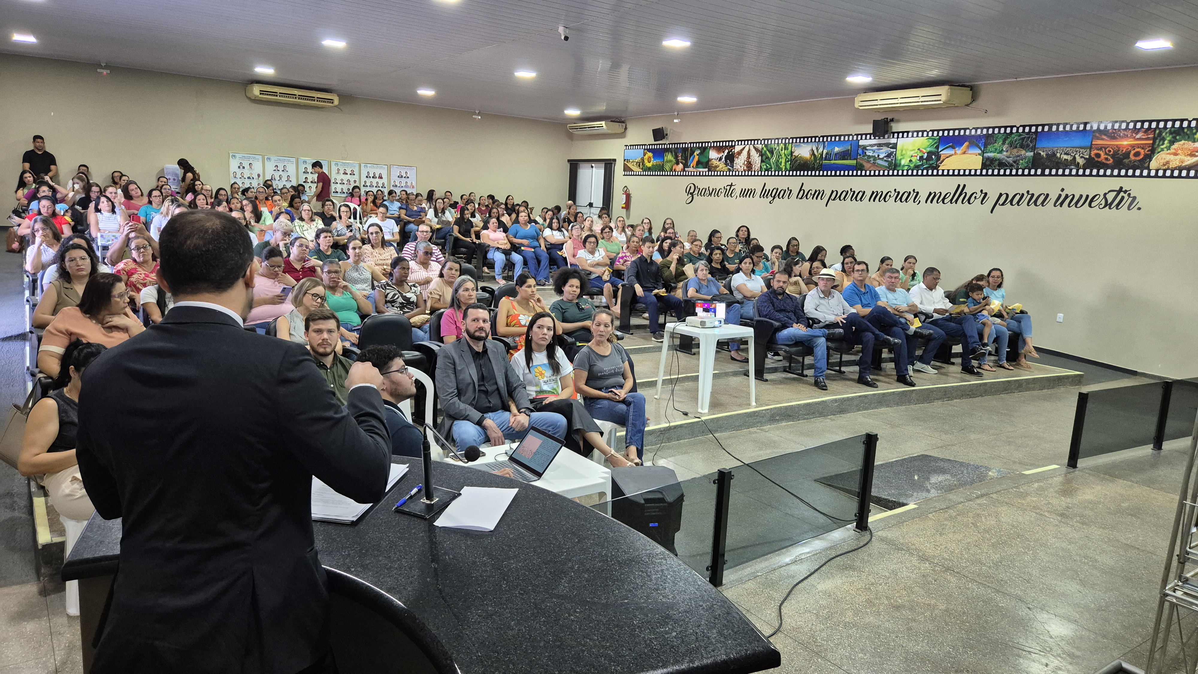 O presidente da Câmara Municipal também marcou presença, representando os demais vereadores do parlamento local. Em sua fala, destacou a importância da união entre os poderes e da atuação conjunta entre Legislativo, Executivo e Judiciário na construção de políticas públicas eficazes voltadas à proteção da infância. “Ver aqui reunidos todos os professores da rede pública de ensino nos enche de esperança, pois são vocês os grandes agentes de transformação, que plantam diariamente as sementes de um futuro melhor”.
