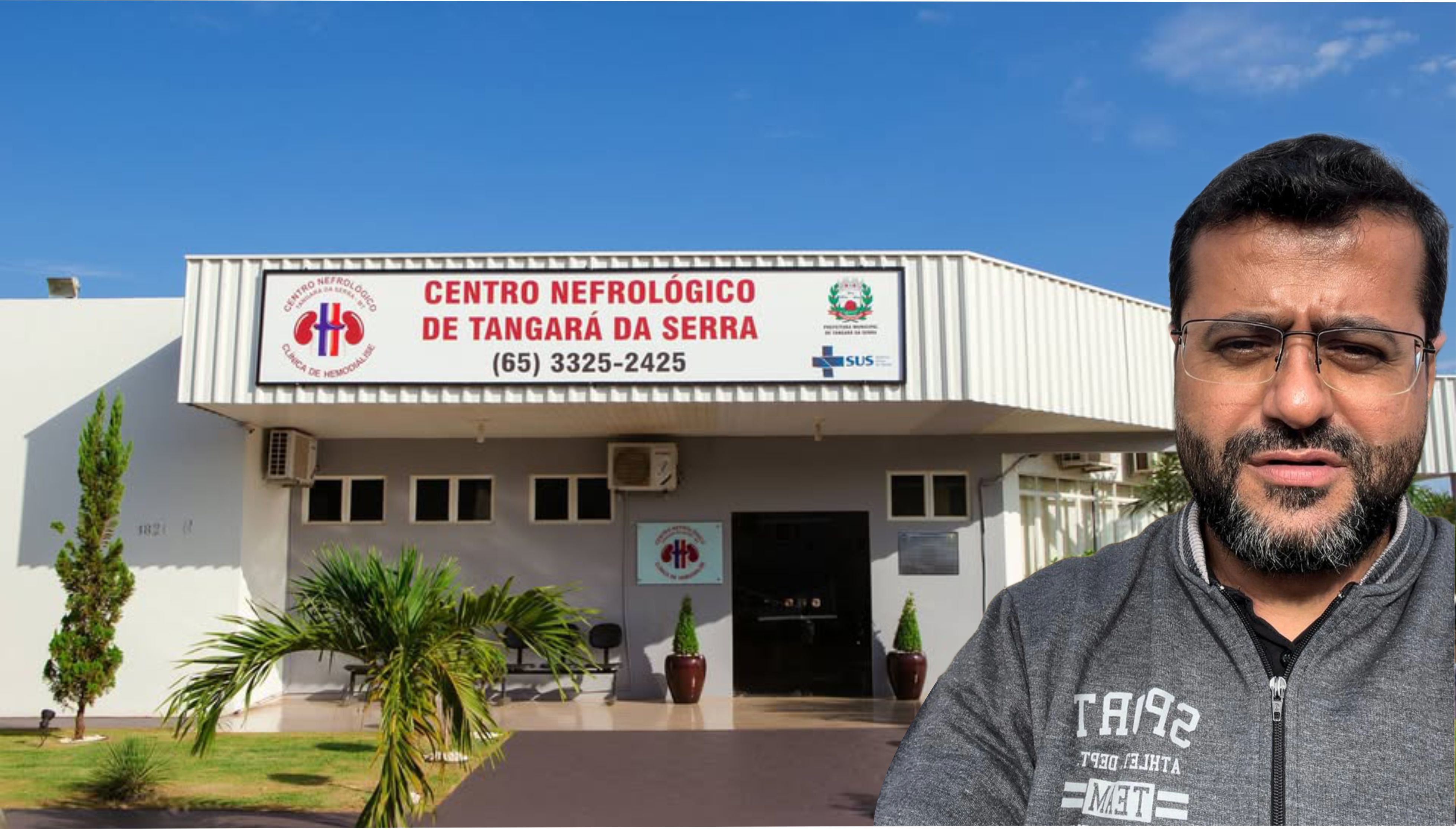 Legenda: Vereador Willian Braz em frente ao Centro Nefrológico de Tangará da Serra