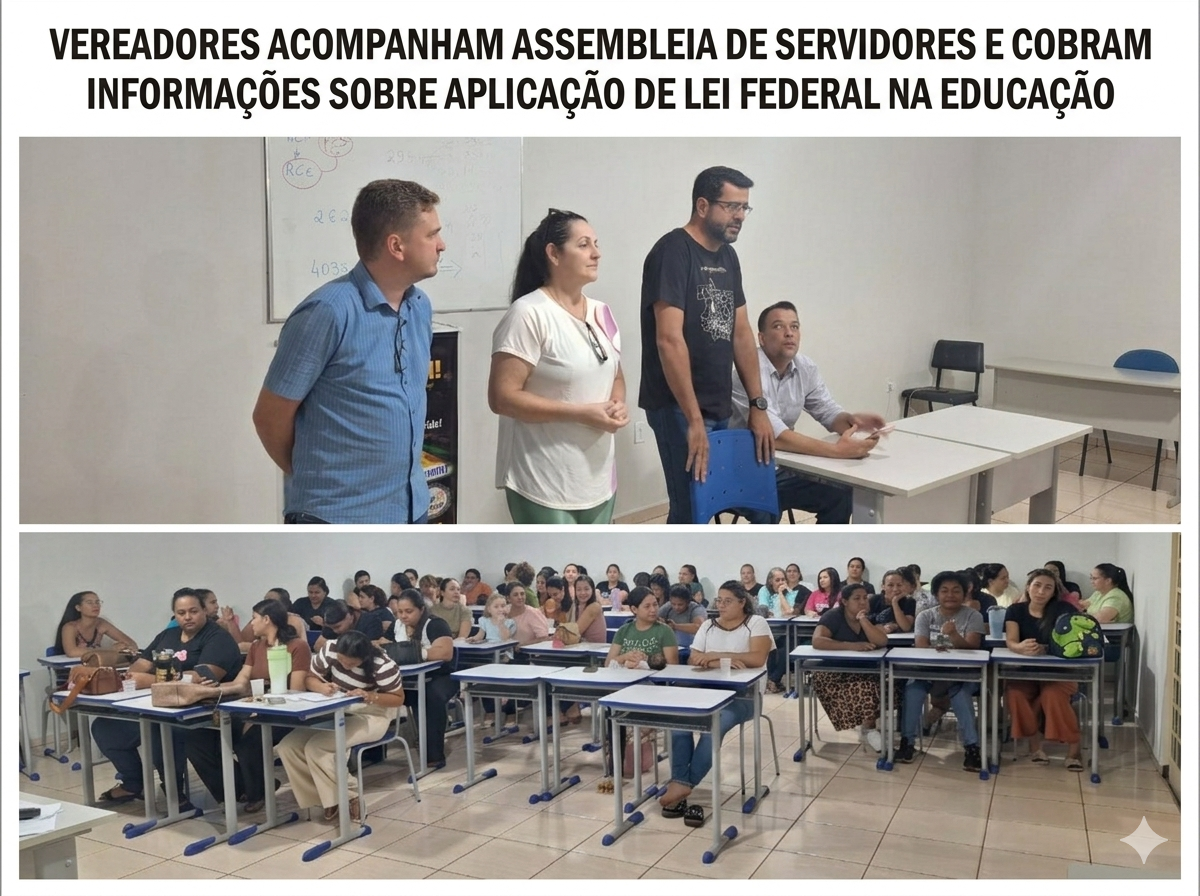 VEREADORES ACOMPANHAM ASSEMBLEIA DE SERVIDORES E COBRAM INFORMAÇÕES SOBRE APLICAÇÃO DE LEI FEDERAL NA EDUCAÇÃO